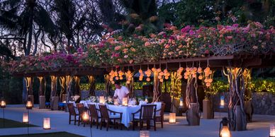 Under the canopy of stars, tables are set on the powder-soft sand, inviting guests to enjoy world-class cuisine in a setting designed by nature. As the night deepens, the flickering lanterns intensify their glow against the indigo sea and sky – casting a play of shadows that dance to the music of the waves.